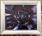 A detailed yet appearing somewhat abstract study of a bromeliad. Painted in acrylic and nicely framed in silver-painted wood, as second photo. Size including frame is W38cm x H31cm.