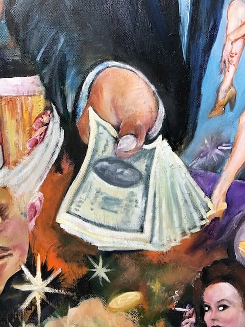 A strange story, similar to that of the temptation of Jesus in the desert, except that it doesn't seem to be in the Bible and it's complicated by the fact that there are more than one St. Anthonys. Still, if it's good enough for Michelangelo and Dali to paint, it's good enough for me! I've put a slightly more modern spin on it.